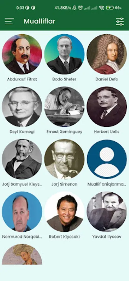 Turli kategoriyalar va mualliflar bo'yicha saralangan kitoblar bazasi.