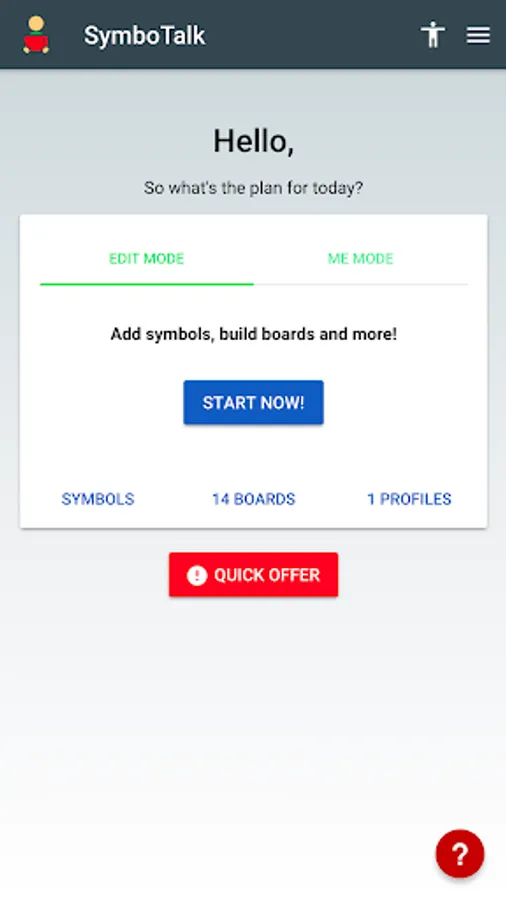 SymboTalk is a free app that talks for you by clicking on symbols (images or icons). The app has predefined communication boards from different areas of life, each board contains symbols (images). Clicking on a symbol reads it aloud and adds it to a sentence that can also be read. This way SymboTalk can be your voice and talk for you.