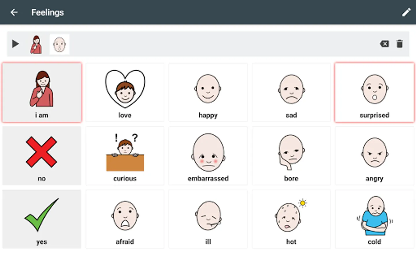 - 14 predefined Boards based on ARASAAC Symbols for immediate use, translated into 23 languages.