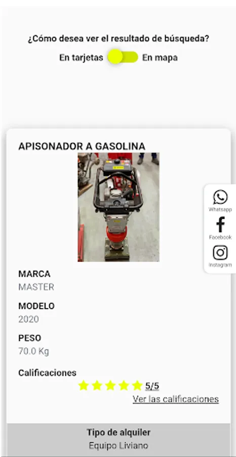 You can report through the platform, damages or difficulties of the equipment, these requirements must be met within the same day of the report. (Punctures, misfires, broken hoses or similar elements, spark plugs, batteries, etc.). Of the equipment and machinery that are rented