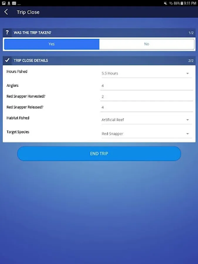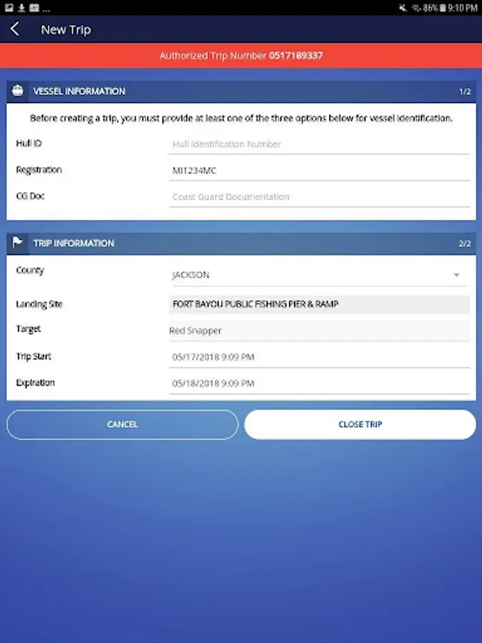 Anglers will be required to register with their name, email and state vessel registration number or USCG vessel documentation number. Once registered, anglers must request a trip number for any trip on which they intend to target Red Snapper. New trip numbers will not be issued until previous catches are reported.