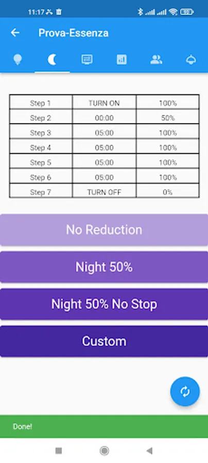 Through this App installed on mobile devices equipped with BLE (Bluetooth Low Energy) it's possible to program the main parameters of the LED driver, such as the driving current of the LEDs and the virtual midnight profile, installed on luminaires with PR WI-LE.