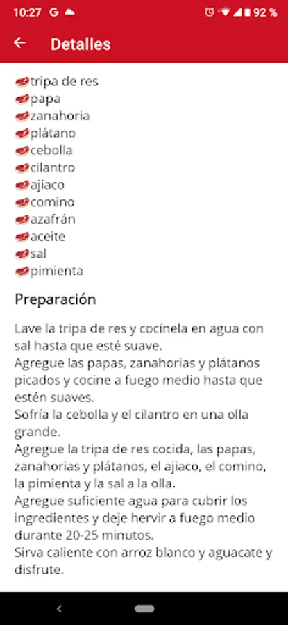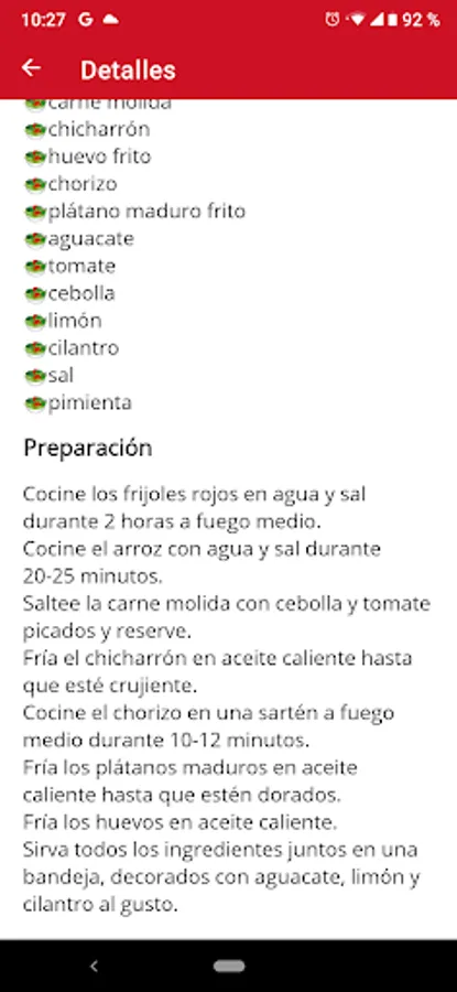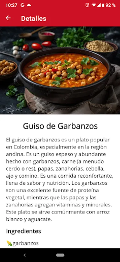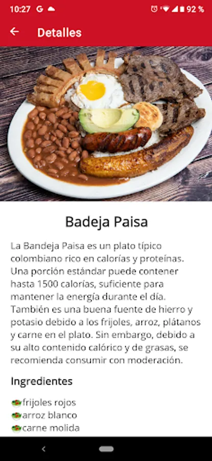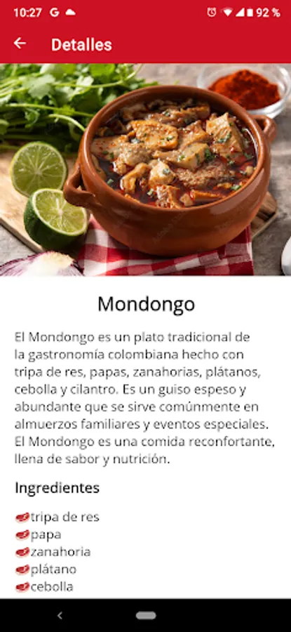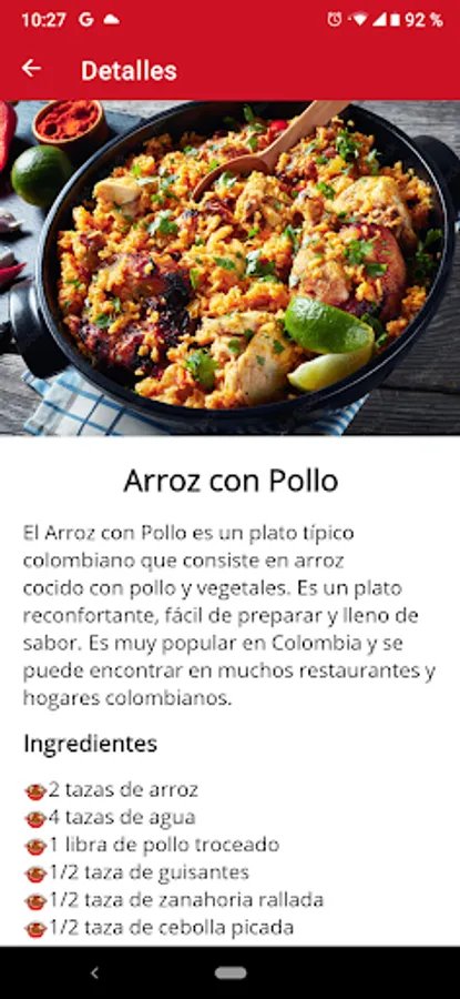 "Explore the gastronomic wealth of Colombia with our mobile recipe app. From the hearty bandeja paisa from the Andean region to the flavorful coconut rice from the Caribbean and the variety of fish from the Pacific, our app offers a wide selection of authentic recipes with instructions step by step to prepare them. Discover the unique flavors and delight yourself with the culinary diversity of Colombia with our recipe app."