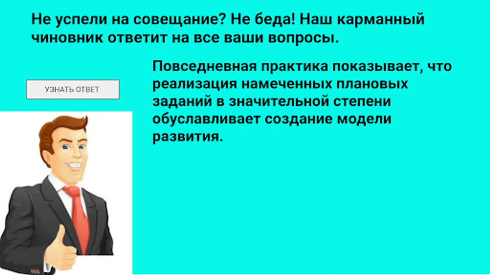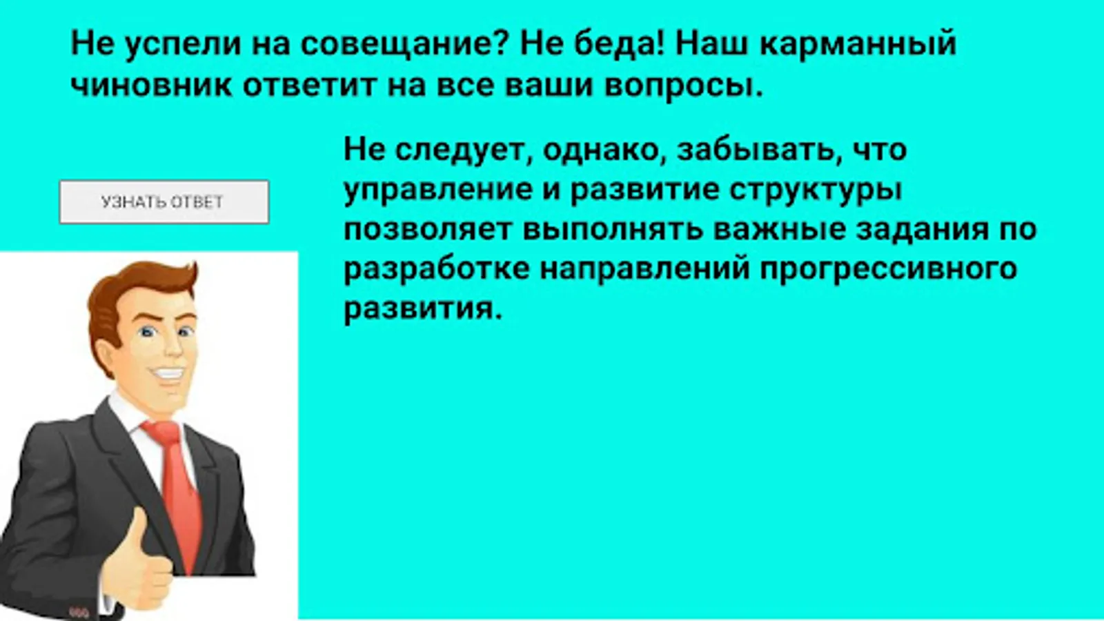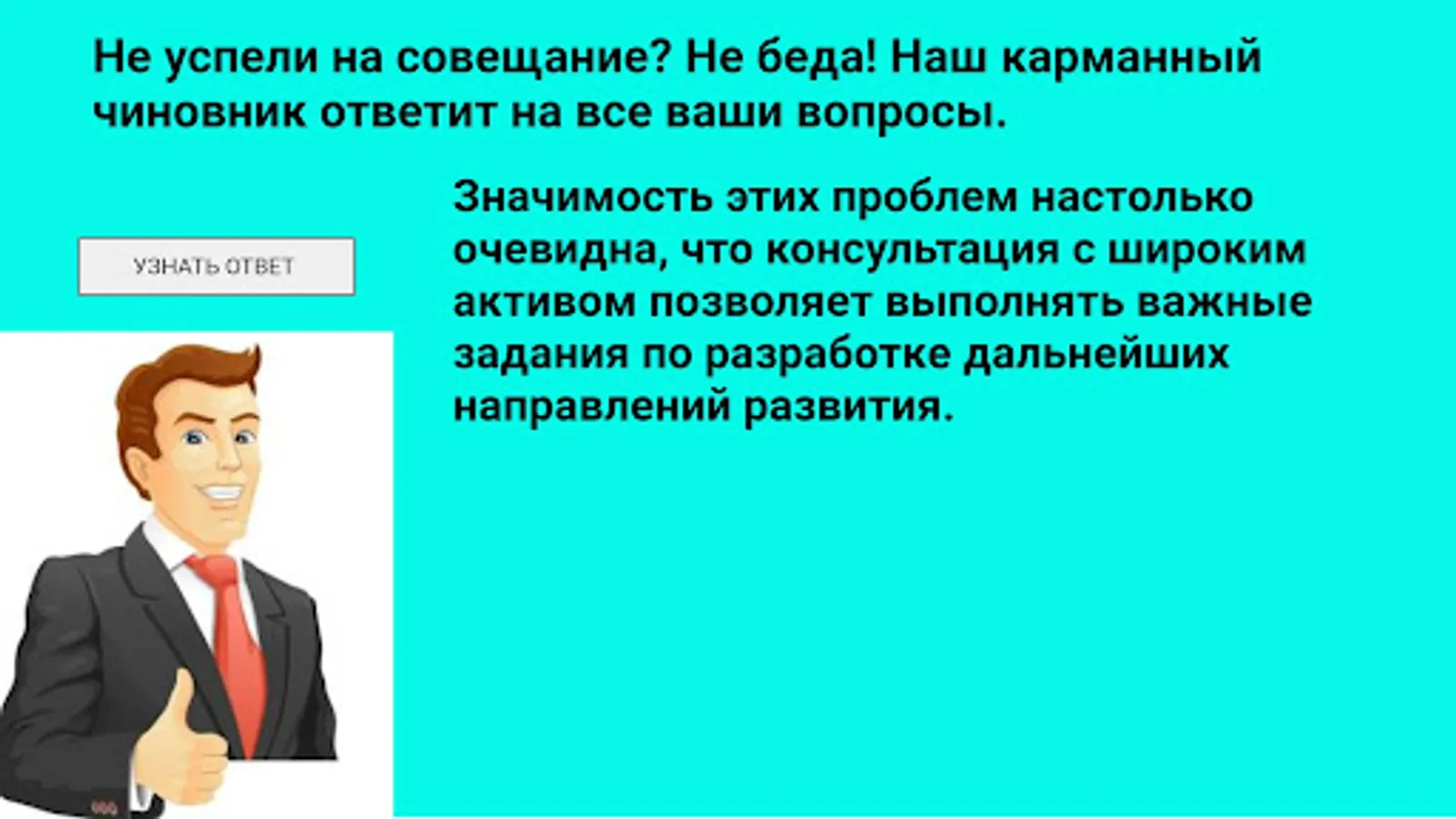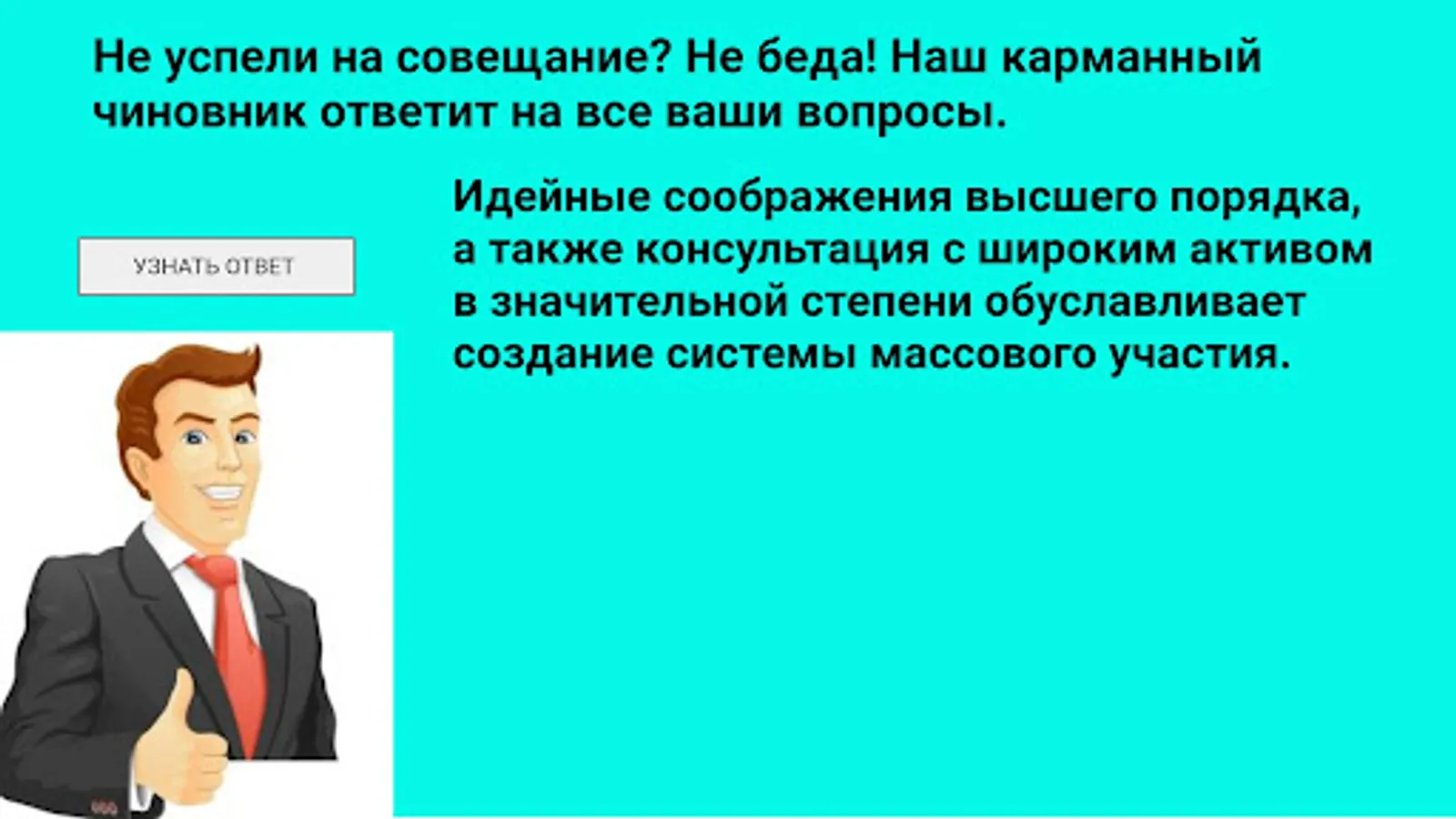 This application, by random generation, creates answers to questions related to the development of a society, country or organization.