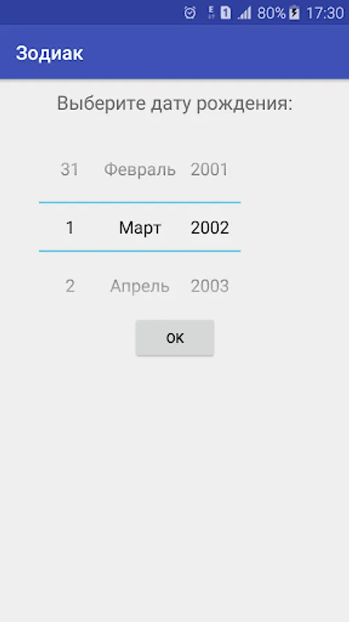 On the first page, you select the date of birth, and on the second page, the result appears - the name of your zodiac sign and the year in which you were born. Click on your sign or year and a web page opens, which describes in detail the characteristics of this sign.
