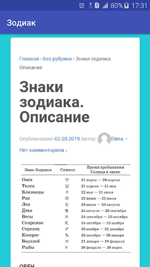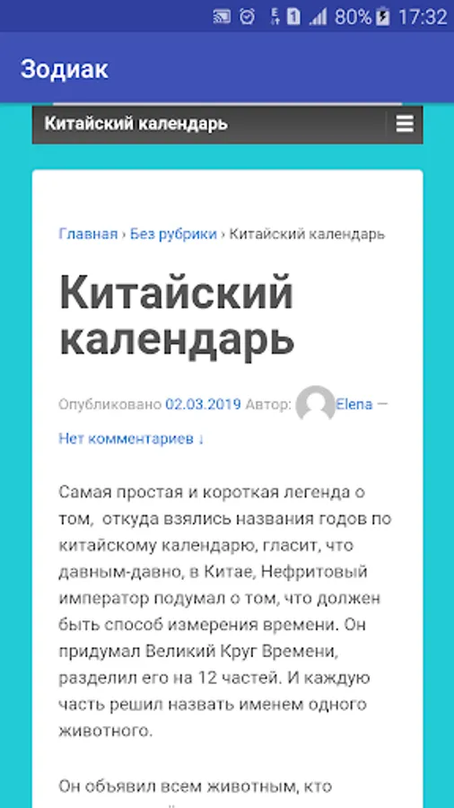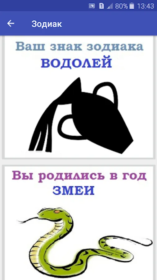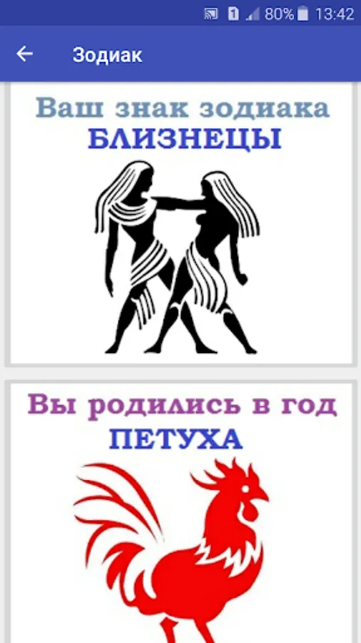 The application is free and without ads. It requires the Internet to find out the description of the sign or year.