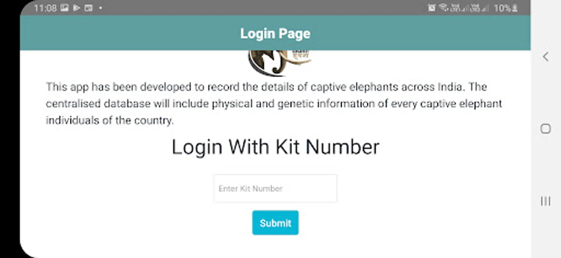 This app has been developed to record the details of captive elephants across India. The centralised database will include physical and genetic information of every captive elephant individuals of the country.