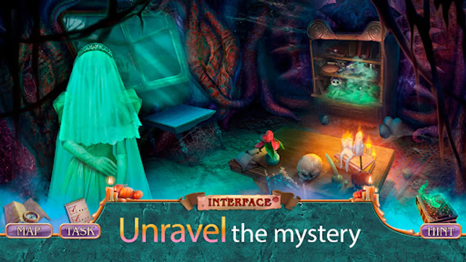 Hunt for scary hidden objects, collect useful items, complete quests, solve the mystery puzzles and complete fun halloween mini-games to find out why Lord Barlow seeks to plunge the real world into the abyss of nightmares.