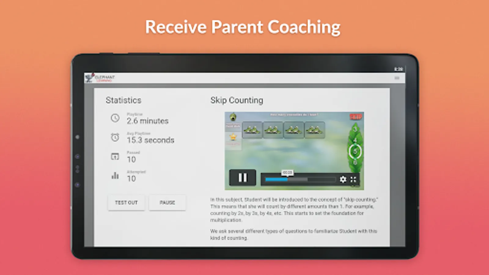 For the parent, our reports show you exactly what your students are working on, how we intend to teach it, where you may want to focus your attention, parent coaching videos for dealing with topics such as math anxiety, activities and games you can do to take learning outside of the system, and we even allow you to try puzzles as the student without affecting their score.