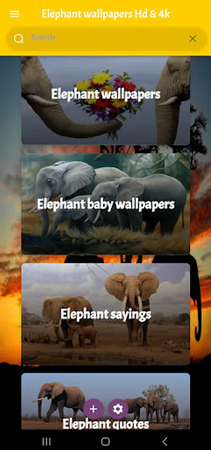 In our application we have four amazing section elephant wallpaper, elephant baby wallpaper, elephant quotes and elephant sayings.
