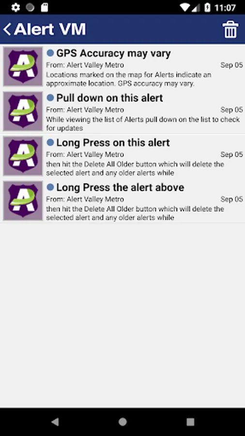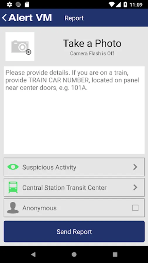 The Alert Valley Metro® Safety and Security App offers riders a quick and discreet method for reporting safety and security concerns directly to the police. App users can send photos, six second video, text descriptions, and locations of suspicious people or activities. From the home screen, users have two easy options for contacting the police: