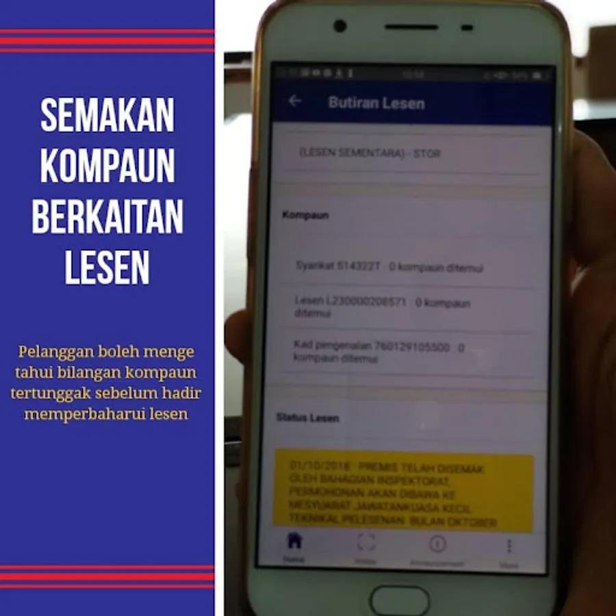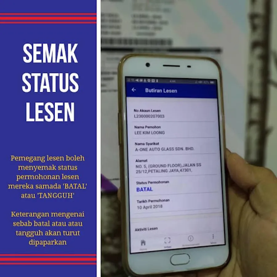Melalui aplikasi ini, pelanggan boleh mengimbas kod bar pada lesen untuk :