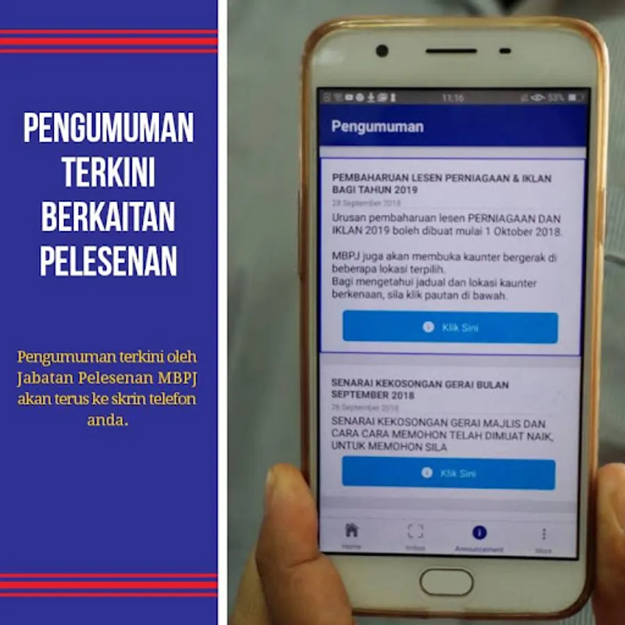 Mereka yang memuat turun aplikasi ini juga boleh membaca pengumuman terkini dan berita terkini daripada Jabatan Pelesenan MBPJ seperti pautan borang, S.O.P, promosi dan lain – lain.