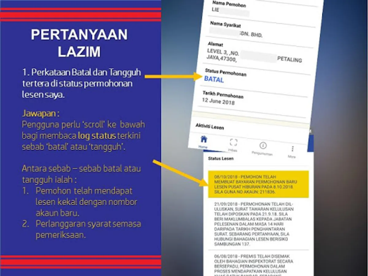 1. Mengetahui nama syarikat, alamat lesen, aktiviti yang dilesenkan dan tempoh sah laku lesen.
