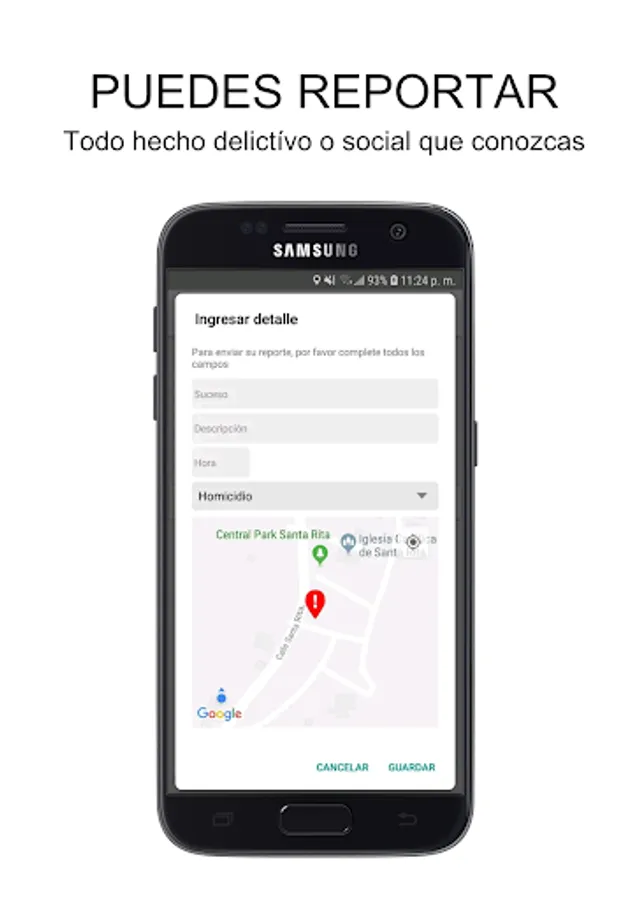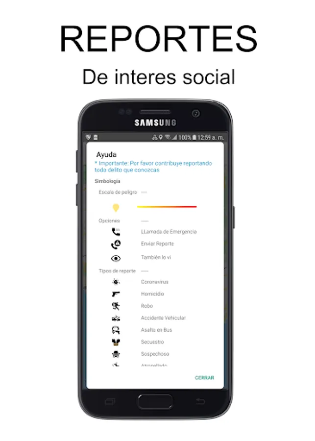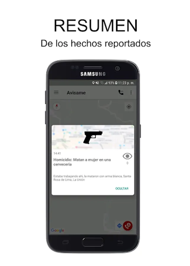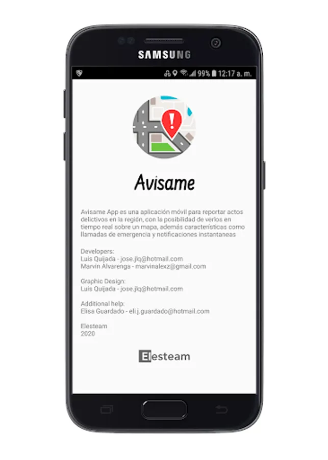 Avisame app is a mobile application to report criminal acts in the region, with the possibility of seeing them on a map in real time and features such as emergency calls and current notifications.