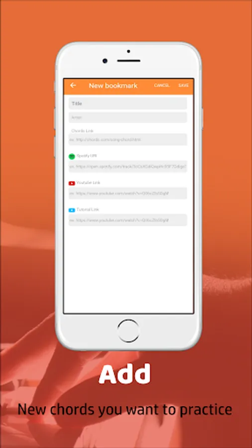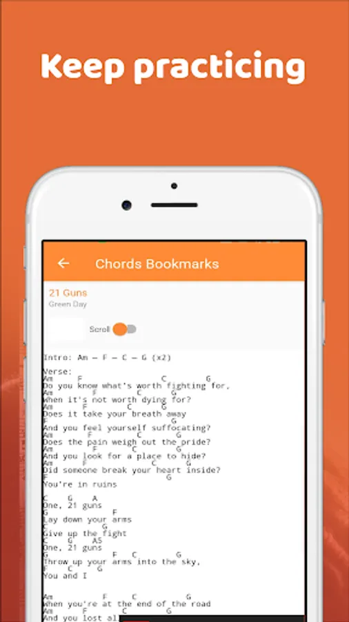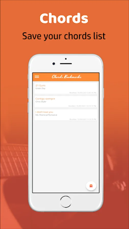Chords bookmarks is a mobile application to store in an organized way the tablatures, chords, tutorials, videos and links to music of the songs that you need to practice as a musician.