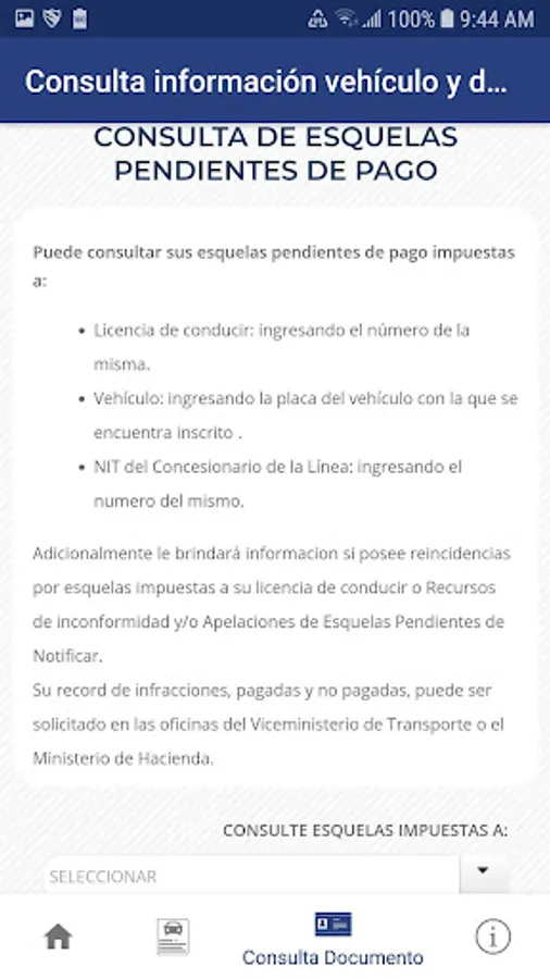 Mobile application to verify and consult information of vehicles and documents of El Salvador