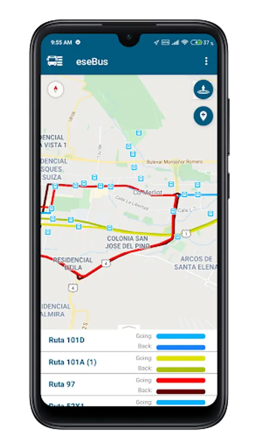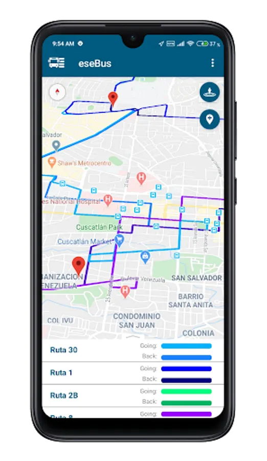 EseBus is an application to know the route of the buses in El Salvador, in which you can see all their route drawn on an interactive map, select which routes you want to see and choose the one that best suits you to reach your destination.