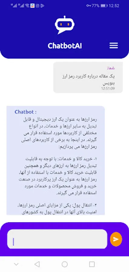Using this Android application, you can communicate with the famous GPT artificial intelligence robot and ask your questions.