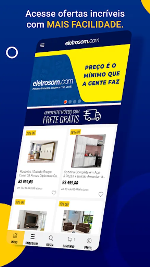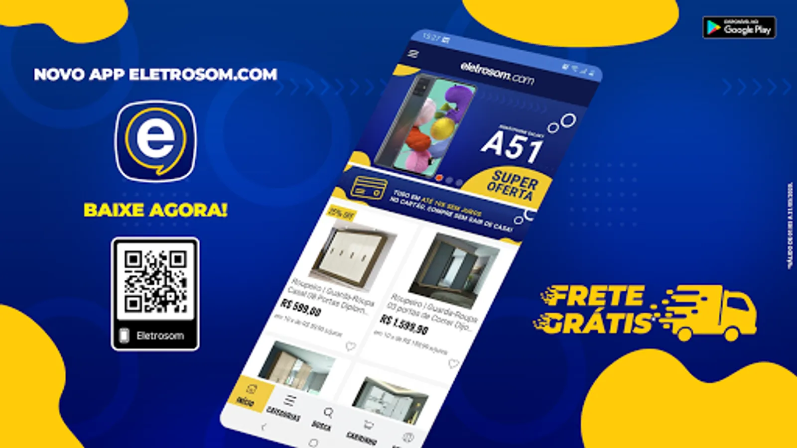 Here, in addition to exclusive advantages, you also receive first-hand offers and promotions. Download the Eletrosom app and follow exclusive promotions across the entire line of cell phones, electronics, furniture, computers, appliances and more!