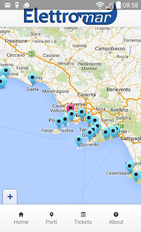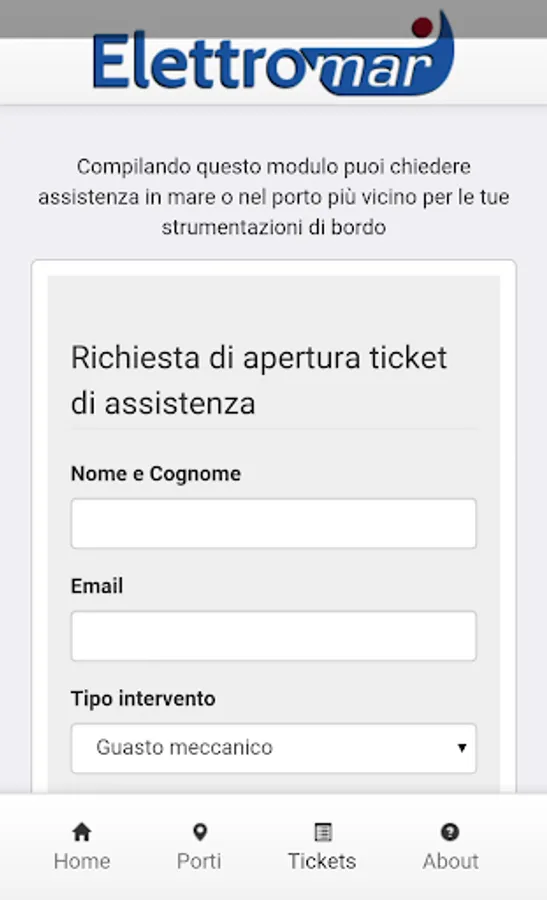 Application for customers Elettromar with which you can search for nearby ports, open support tickets and access to the site Elettromar