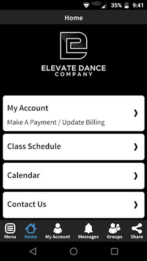 The Elevate Dance Company app allows you to register for classes, workshops and special events at our studio, update and make payments to your account. The calendar, team stat tracker, social media links, and contact information are also easily accessible from the app.