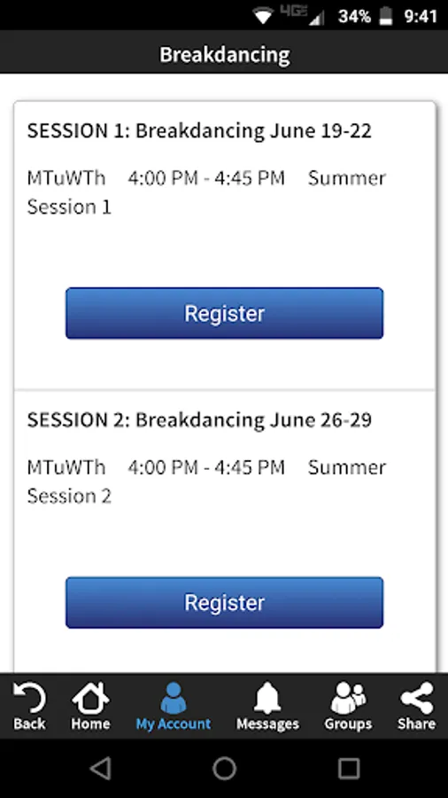 - Have a class in mind? Search by class, level, day, and time. You can register or even put yourself on a wait list.