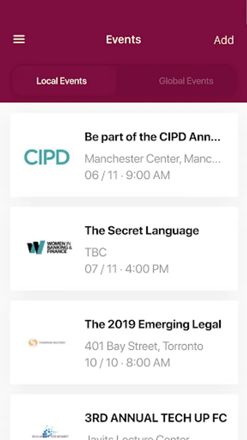 Having your events on our app gives you the forum to advertise more strategically and reach your target audience directly. Users can also view attendance encouraging others to register and can search for events happening locally or around the globe. It gives women the edge, both through the power of networking and the tools for staying ahead of the curve by keeping up to date with the latest industry events.