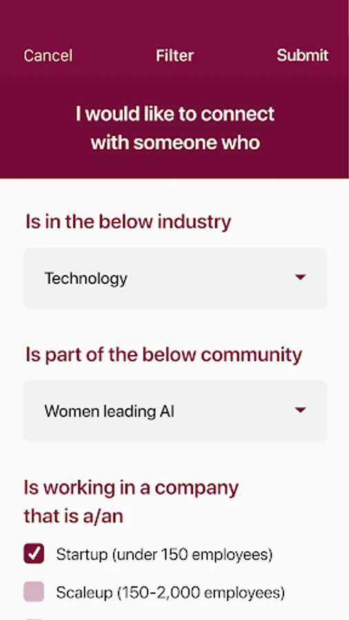 You can also find the perfect employer or employee by building your profile on ElevatHer to initiate conversations and unlock opportunities by connecting via careers which allows you to filter users based on company size, location and seniority.