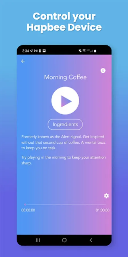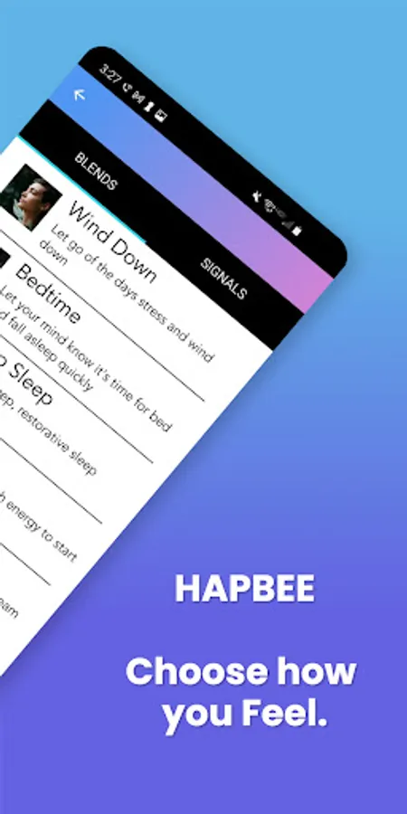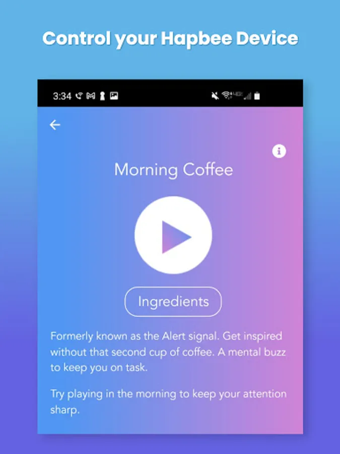 This is the companion app that pairs with your Hapbee smart headband to allow you to choose the right blend throughout the day.