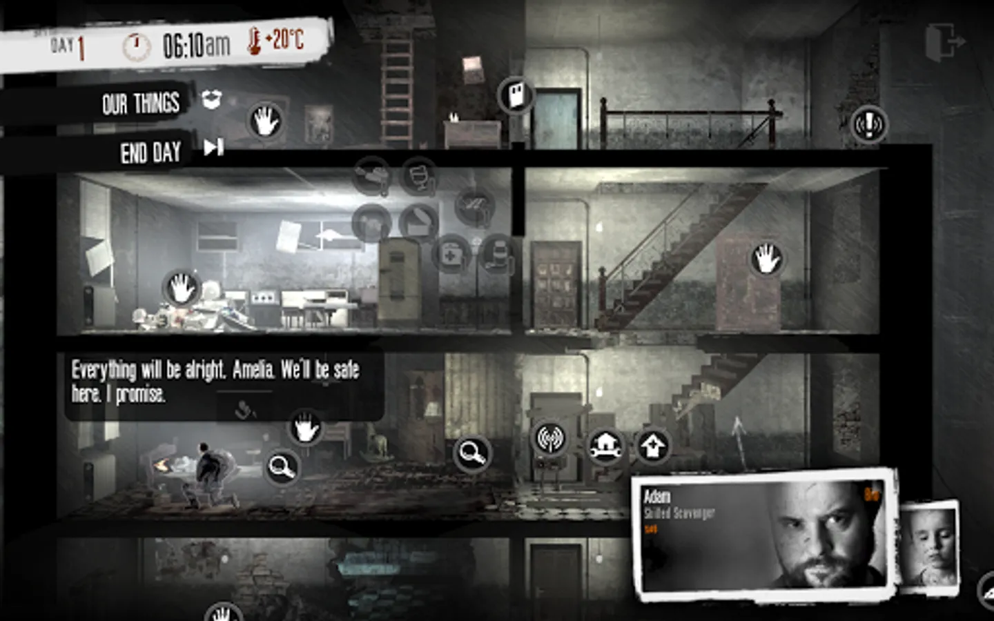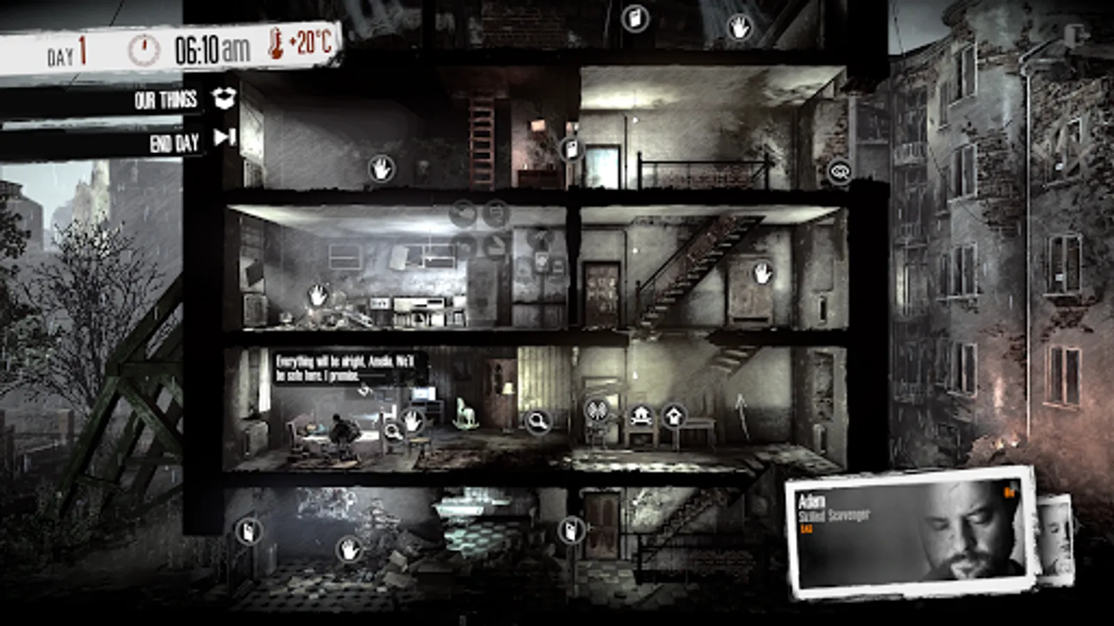 It tells a story of family's struggle to preserve the last pieces of humanity in times of despair and cruelty. Become Adam - a father trying to save his daughter from the horrors of war and escape the besieged city. Follow their steps and discover a story of love, hate and sacrifice - the emotions we all share in the darkest of days.