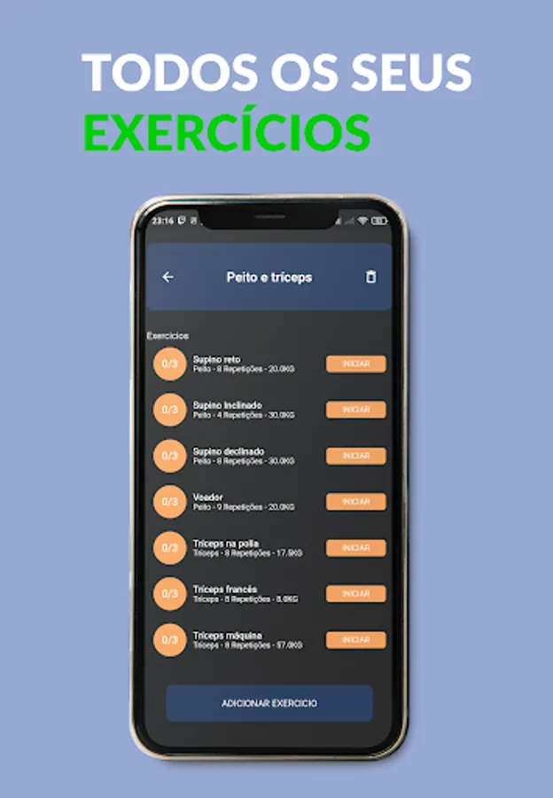 Transform your training routine with Meu TRAINO, the ultimate training sheet application that will revolutionize your bodybuilding practice. With Meu TRAINO, you will have access to a complete platform to create and follow your personalized training records. The best part? It works offline, no internet connection required!