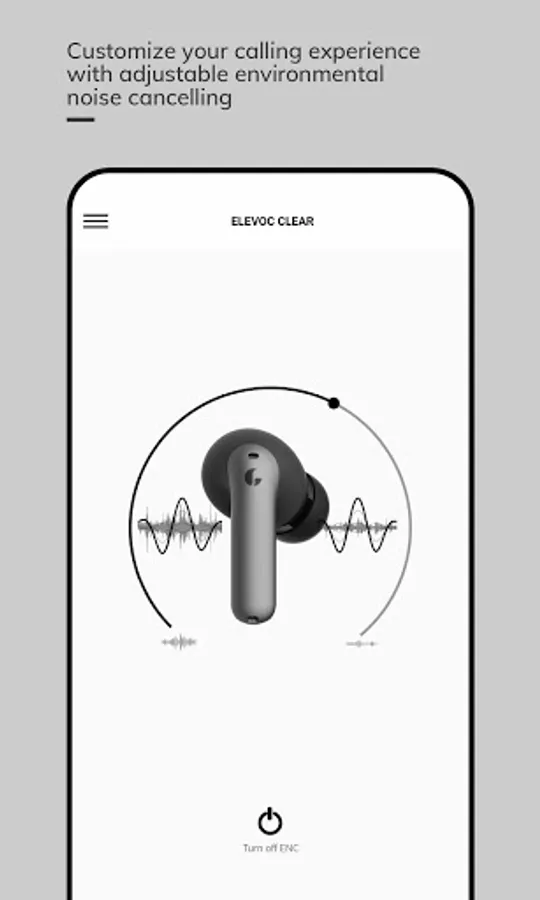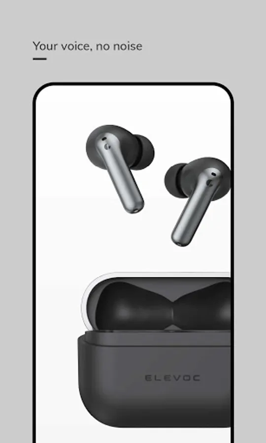 Connect and customize your Elevoc Clear Noise Cancelling Earbuds with this easy to use Elevoc App. This App allows to set the Environmental Noise Cancelling level quickly. When taking a call, the ENC will default to the highest level of noise-cancellation. But what if you want to share the ambiance or your favorite song? Open the Elevoc app, slide the scale down, and gradually let in the noise from the world around you. With the Clear earbuds and the Elevoc App, how much they hear is up to you.