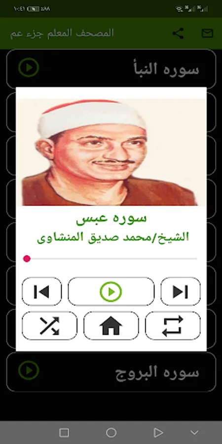 1 - You can test any Surah from the list and hear it Sheikh Mohammed Siddiq Minshawi