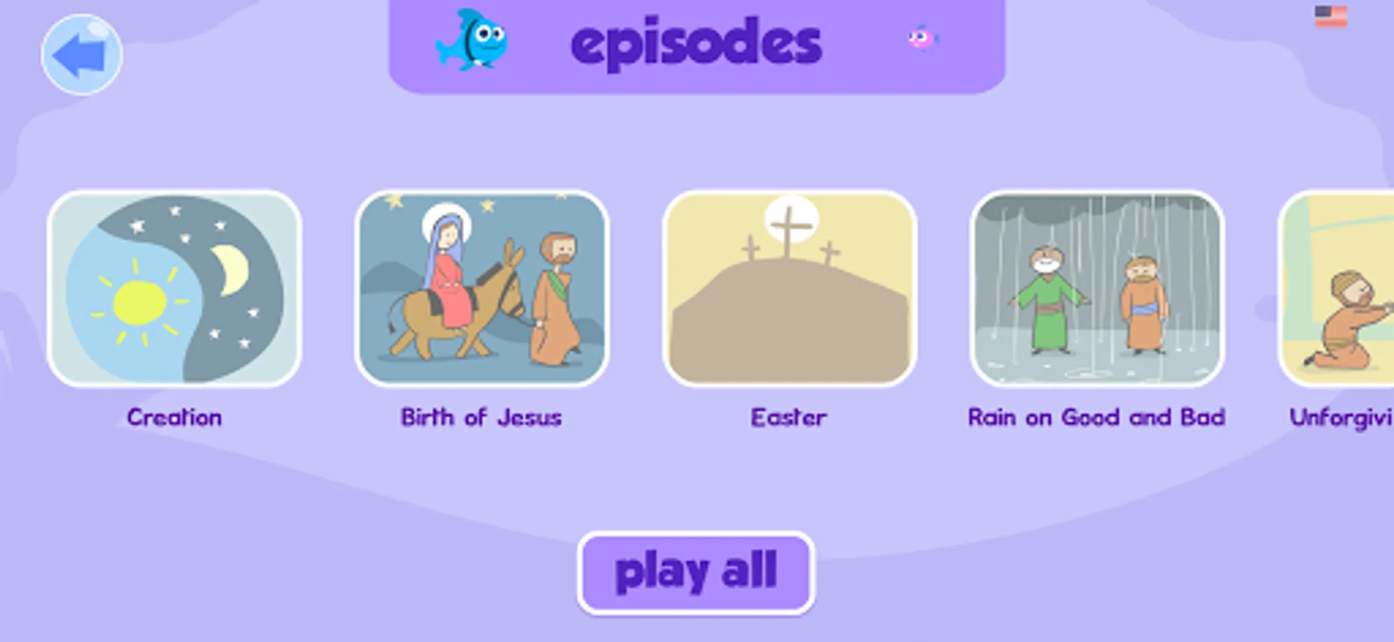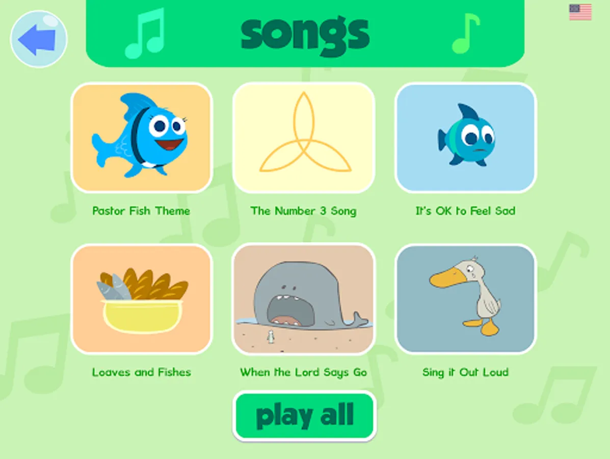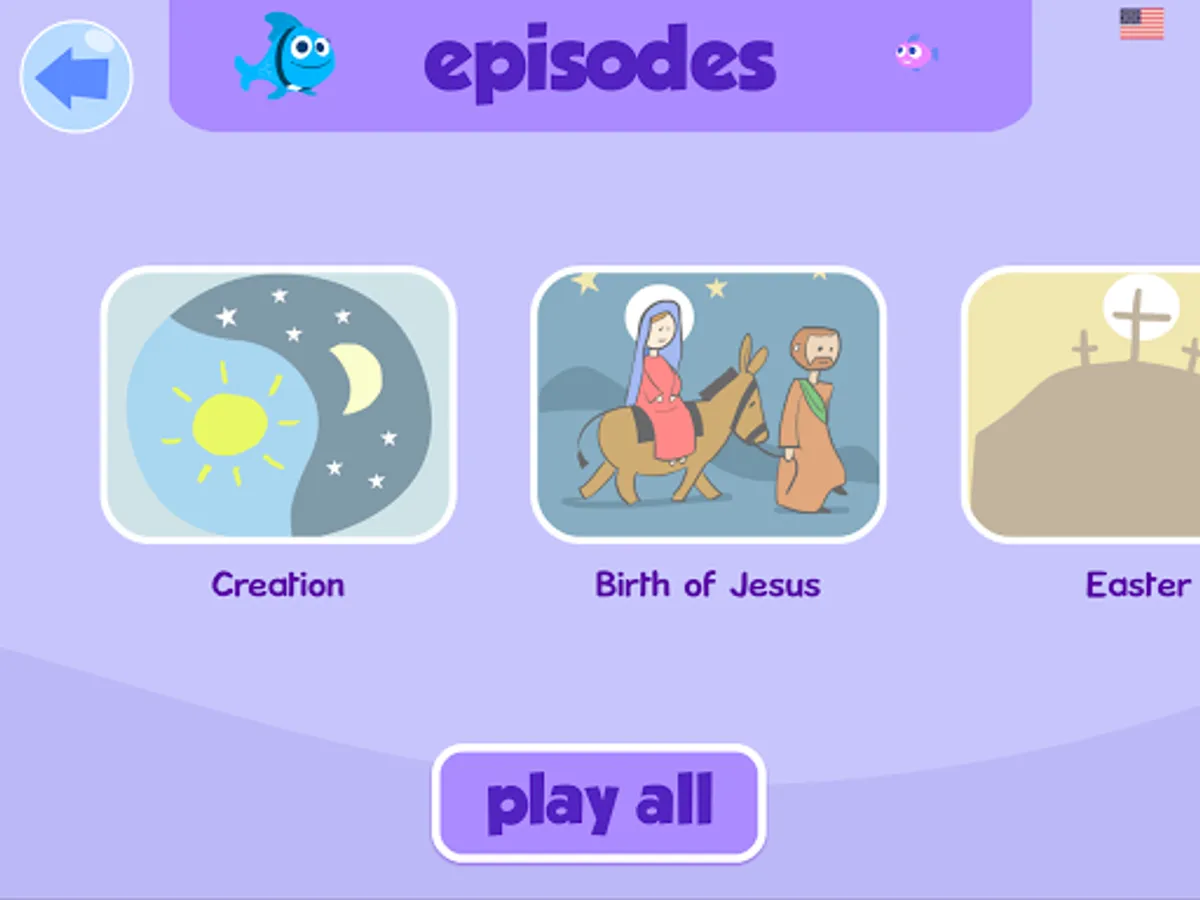 Loads of surprises bring hours of productive fun, as users internalize positive messages for biblical (and life) literacy. Laugh along as the radio announcer brings you silly sports and weather. Play memory and math games, make music with friendly sea turtles, sing along with the other minnows, even expand your understanding of another language. Yes, it’s in English, Spanish, Russian and Ukrainian, with more languages planned!