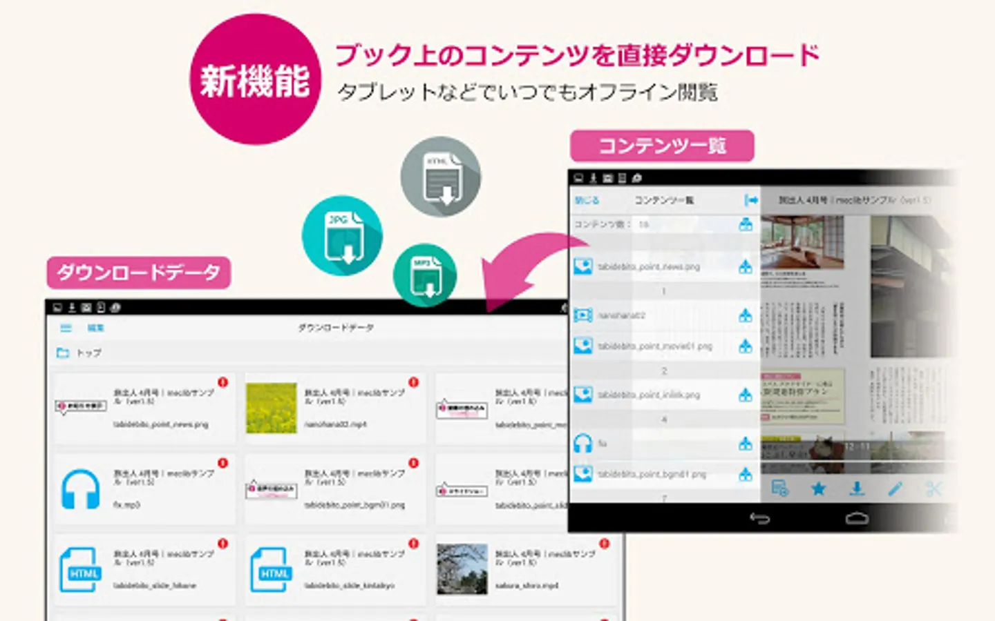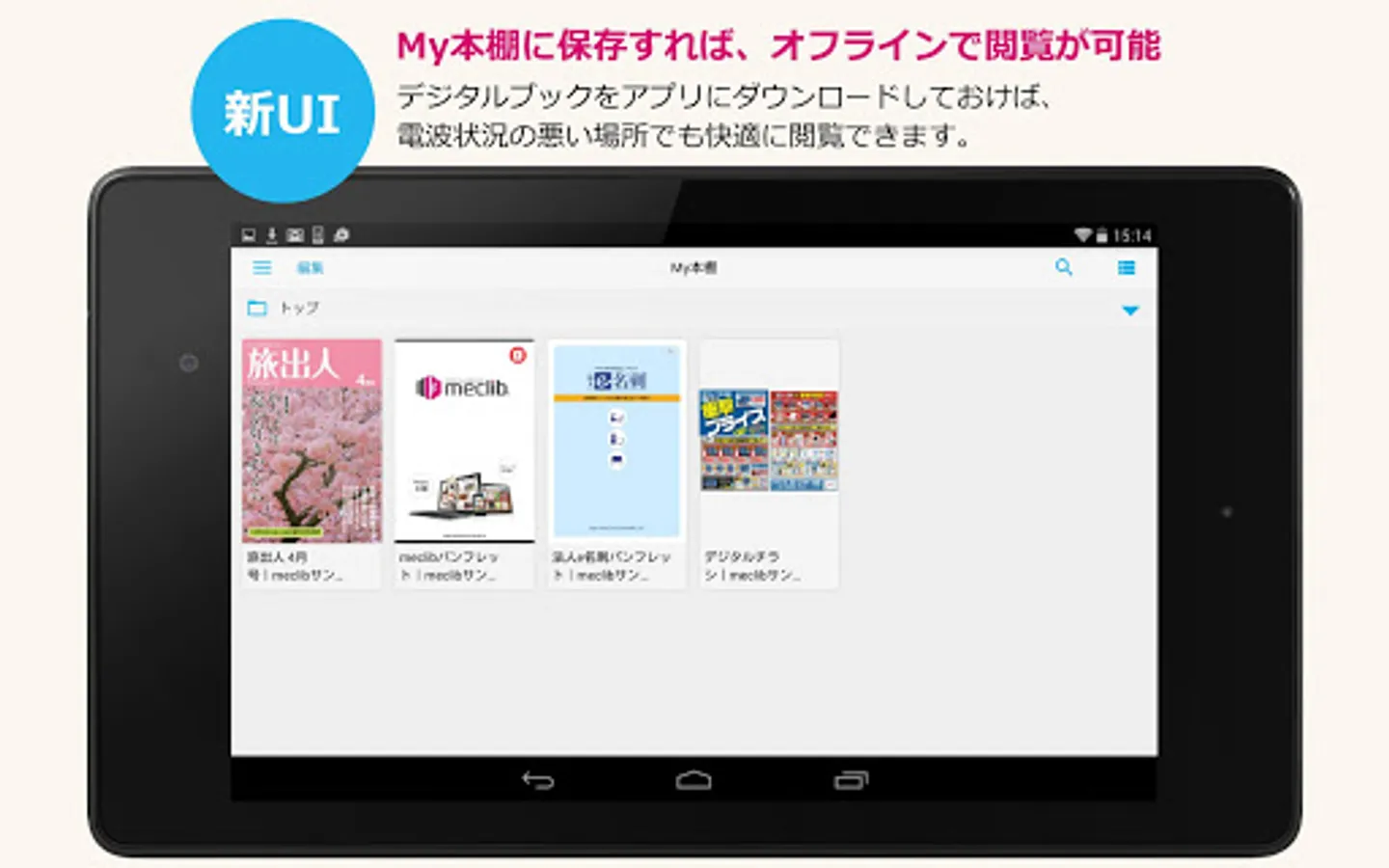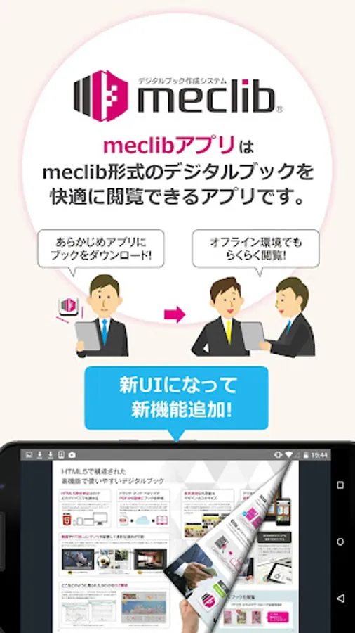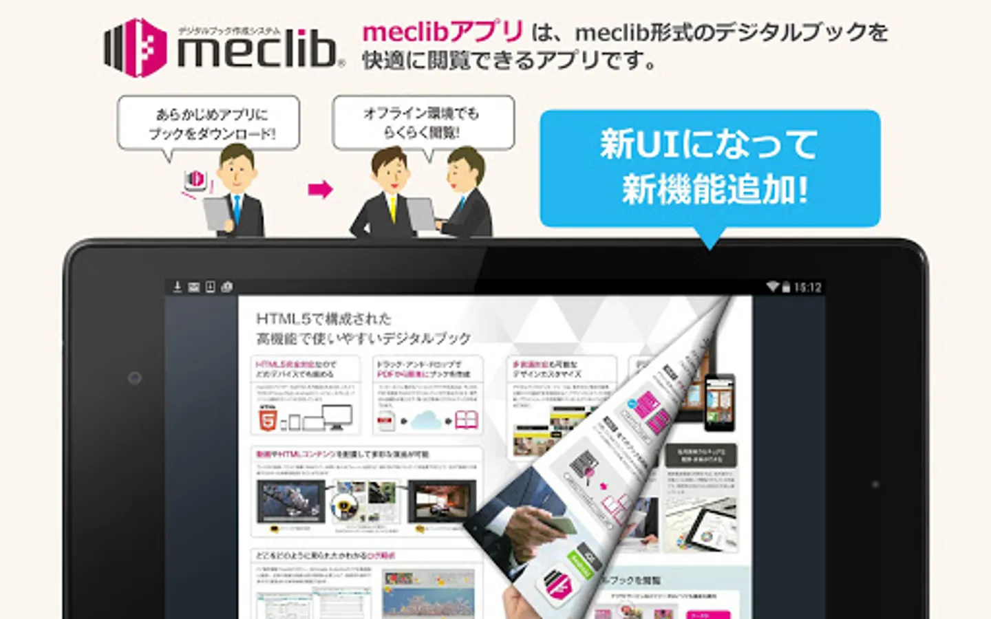 meclib app is an application that allows you to view digital books created with the digital book creation system "meclib" comfortably on your Android device.