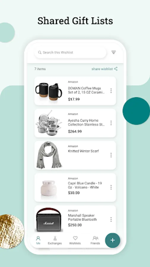 - Save and share wish lists for Christmas, other holidays, special occasions, or parties
