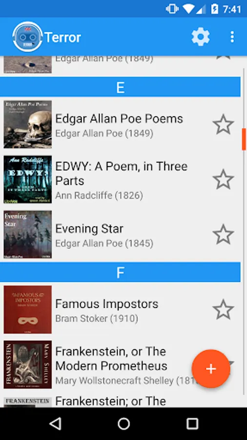 A collection of books, short stories and poems of gothic and terror literature from the public domain librivox.org. Enjoy the best works by Edgar Allan Poe, H. P. Lovecraft, Bram Stoker, Mary Wollstonecraft Shelley, Matthew Lewis, William Godwin and Ann Radcliffe.