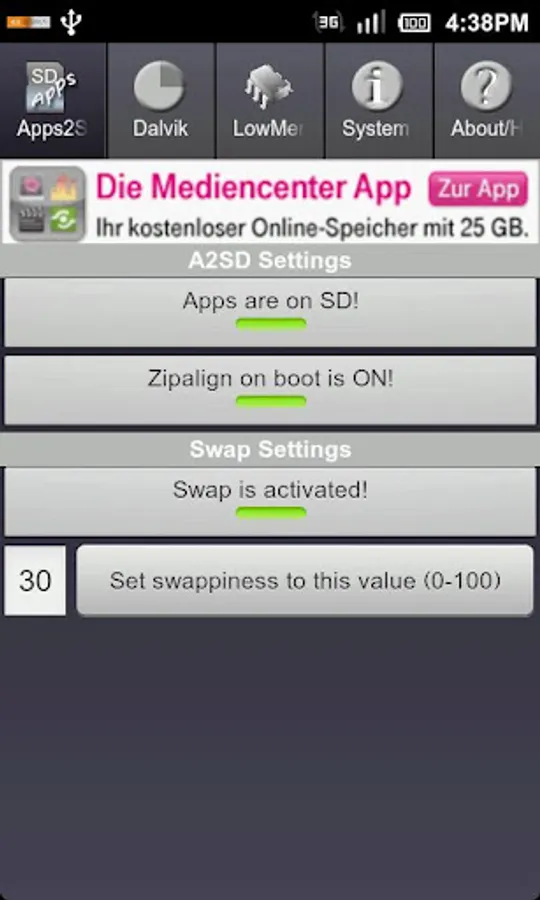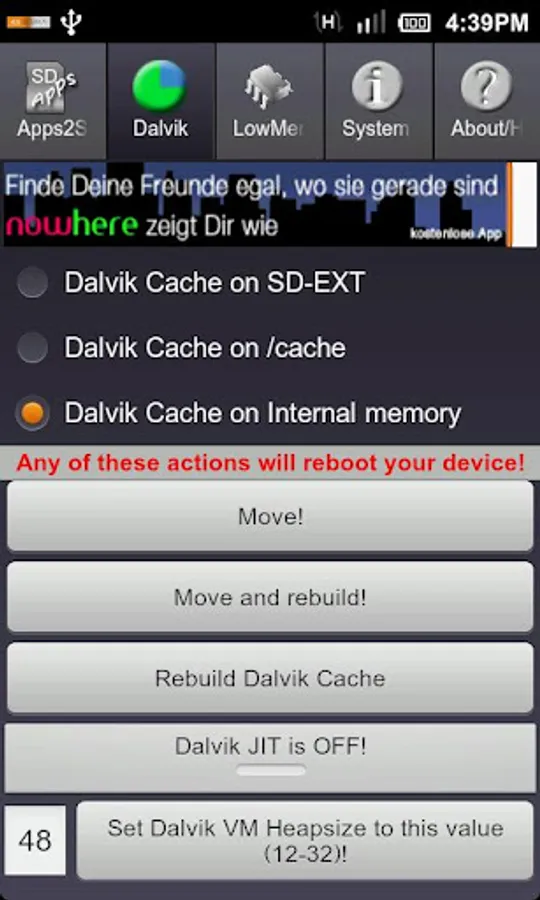- Set Dalvik Heapsize (for now only values between 12 and 32, i do not know if any values in this margin are good!)