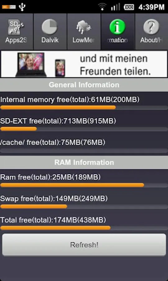 - System Info Screen which shows: free/used ram, free/used swap, free/used internal memory, free/used sd-ext, free/used space on /cache/ (more things to come ...)