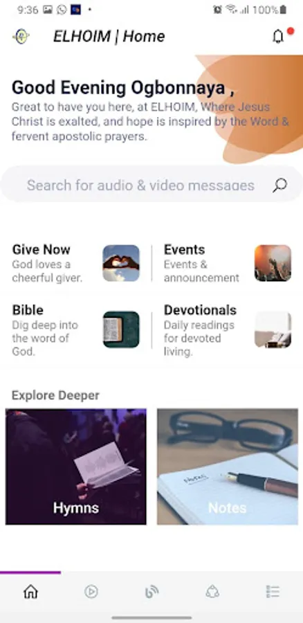 Extend beyond the Sunday mornings and the four walls of (ELHOIM) church. We have brought together all of the top features that your church app must have: Livestreaming, Radio, Events, Devotionals, Notifications, Notes, multi-version bible, Audio/Video Messages, Subscription plans to watch videos or listen to audio messages. App comes with 7 different bible versions namely KJV, NKJV, AMPLIFIED, NLT, NIT, MESSAGE and NRSV versions.