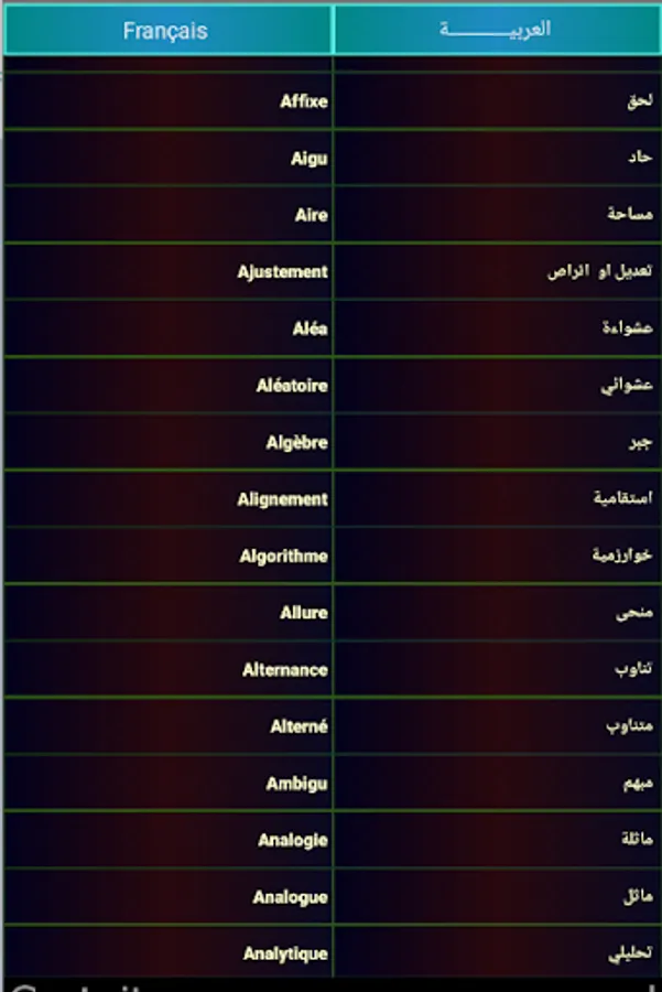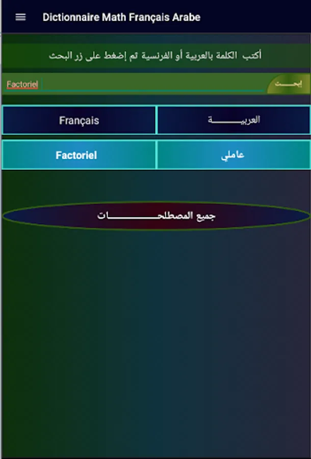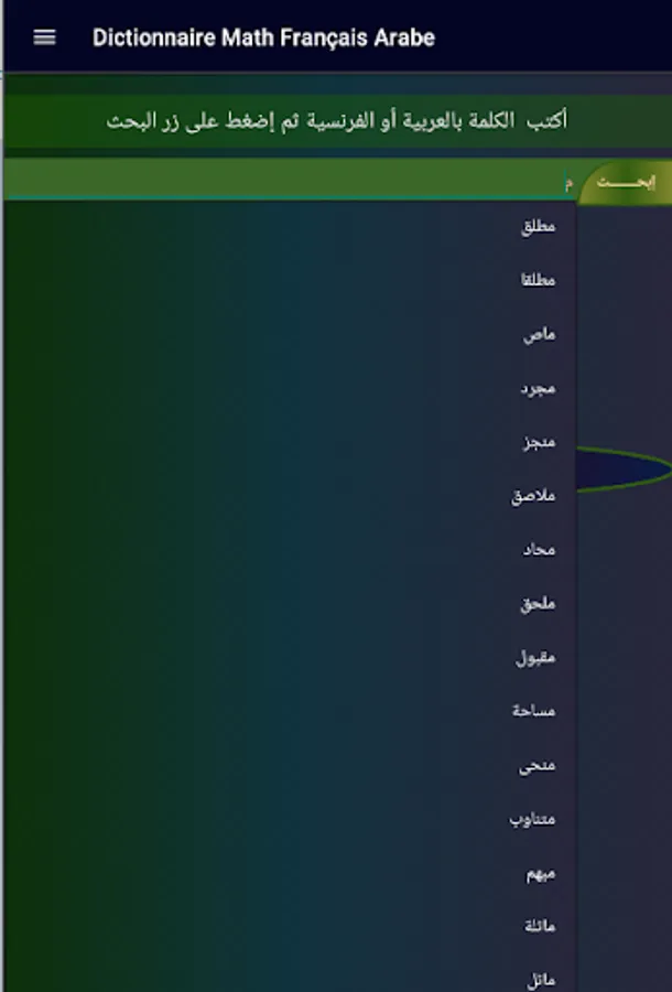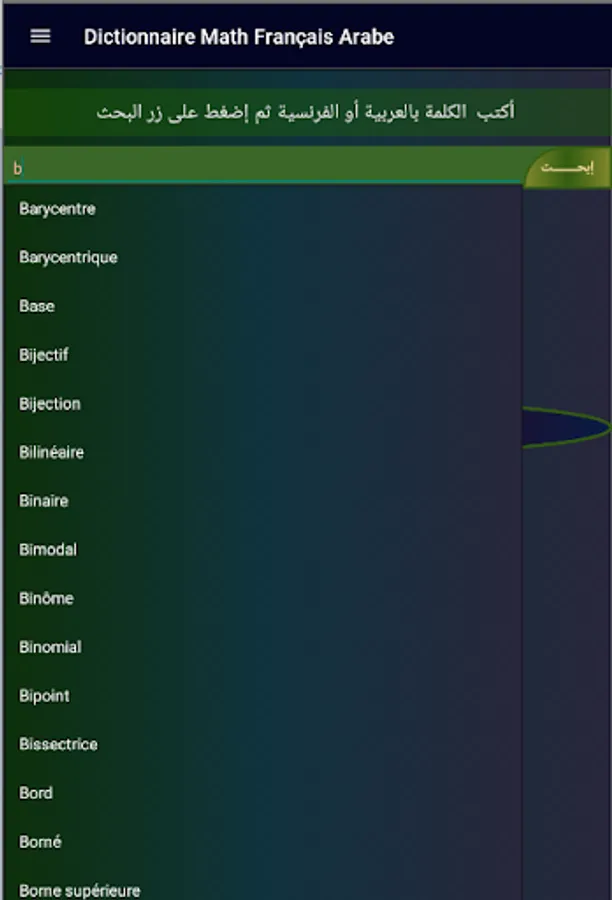 An application that contains Arabic-French and French-Arabic math terms for all students to facilitate understanding mathematics and overcome the obstacle of the French language