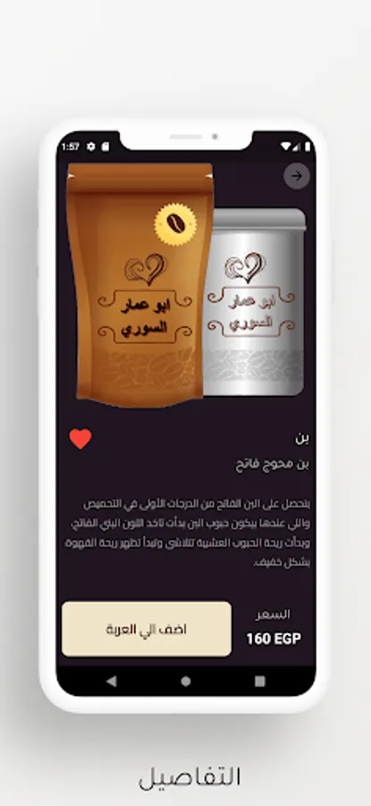 يمكنك تصفح جميع منتجات بن ابو عمار السوري وعمل اوردر بكل سهولة ومتابعة اوردرك واضافة ما اعجبك في المفضلات للرجوع اليه بعد ذلك