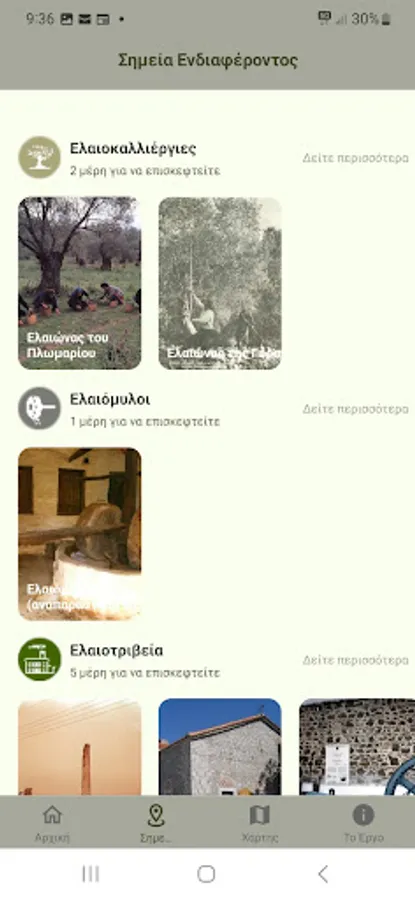 Through the application of Augmented Reality (Augmented Reality) some preserved facilities and some locations with nuggets of olive production facilities were highlighted, using multimedia material.