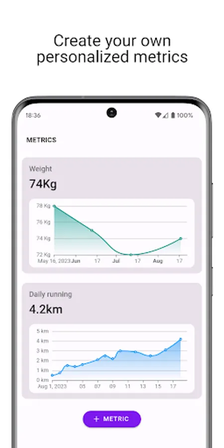 - Customizable metrics: Tailor the app to fit your unique needs by creating personalized metrics. Whether you want to focus on fitness, career, or finance, LifeTracker adapts to your preferences.