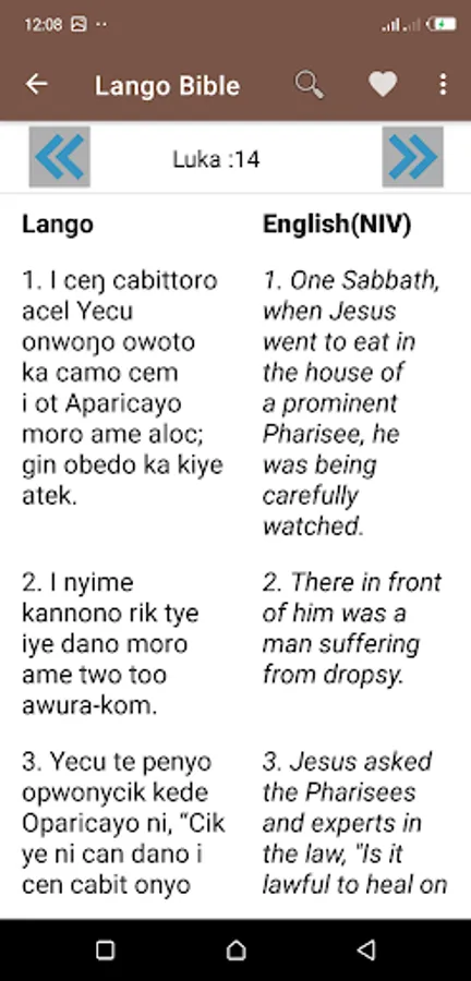 Lango Bible comes with English translation (NIV) which is very easy to understand.