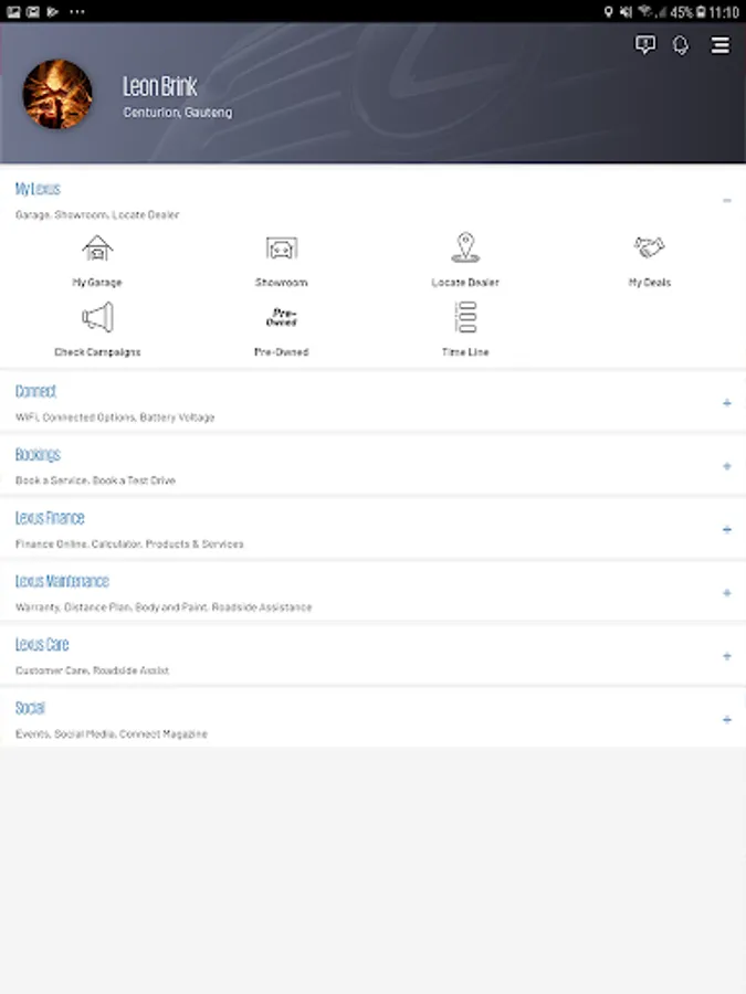The MyLexus app is designed by Lexus South Africa to provide a platform for Lexus owners and enthusiasts to quick and direct access to all information and services related to their vehicle(s).
