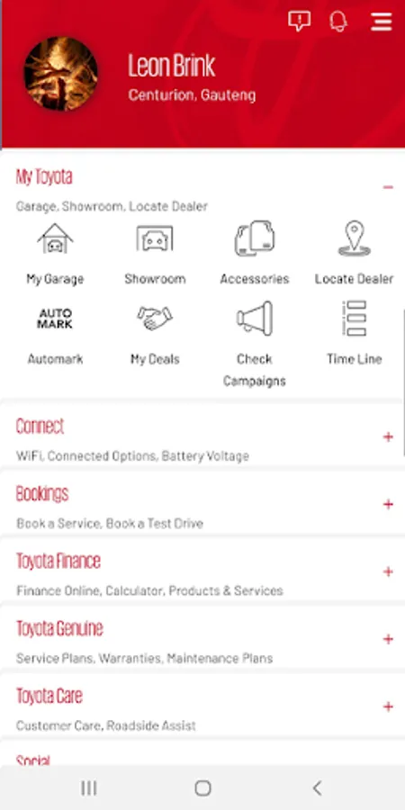 The MyToyota app is designed by Toyota South Africa to provide a platform for Toyota owners and enthusiasts to quick and direct access to all information and services related to their vehicle(s).