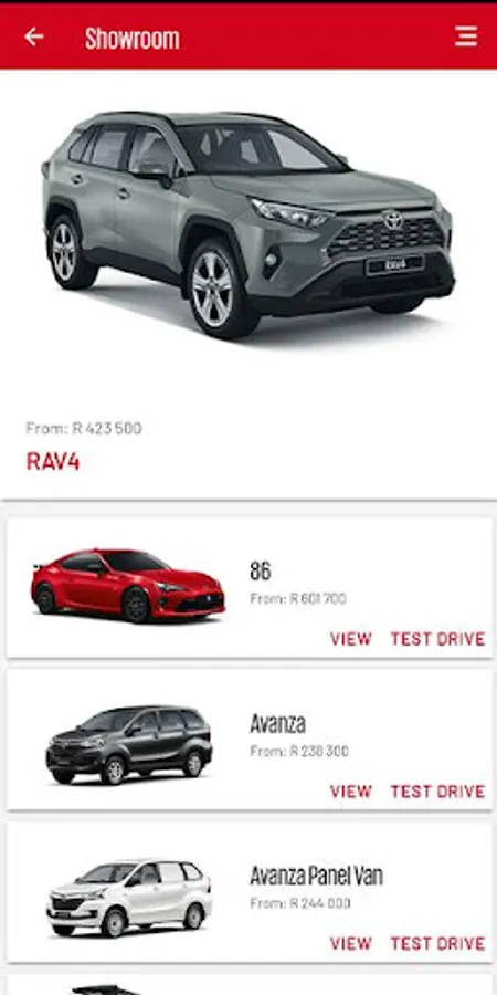• The Showroom, showcasing the line-up of Toyota models in full detail