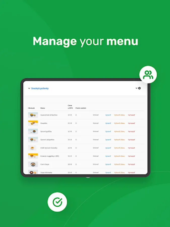 - Manage menu